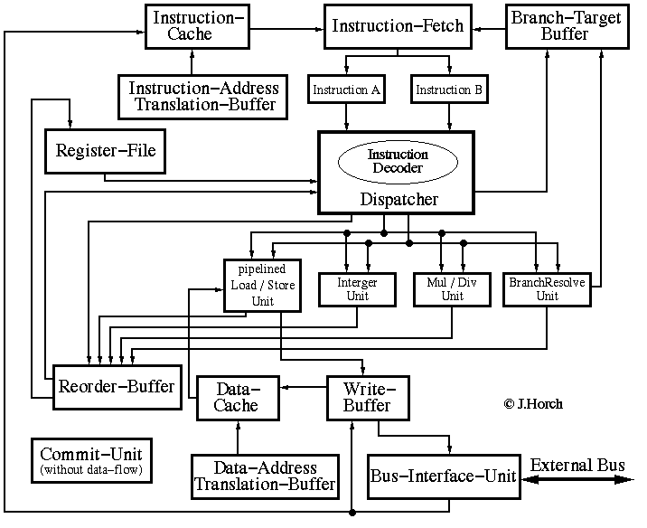 - 4 entry Data-Address-Translation-Buffer, page size: 128 byte