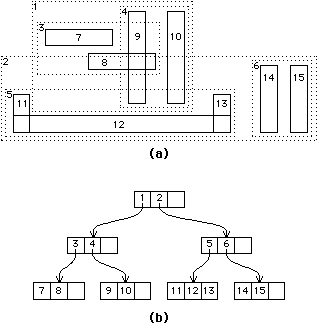 FIGURE 3.20 R-tree organization: (a) Spatial ordering (b) Tree representation.